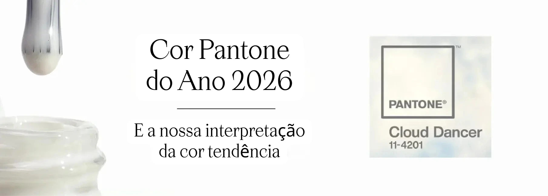 Cloud Dancer move-se entre a luz e o etéreo e representa uma nova era de simplicidade, elegância e renovação silenciosa — tanto no design como no universo da beleza.