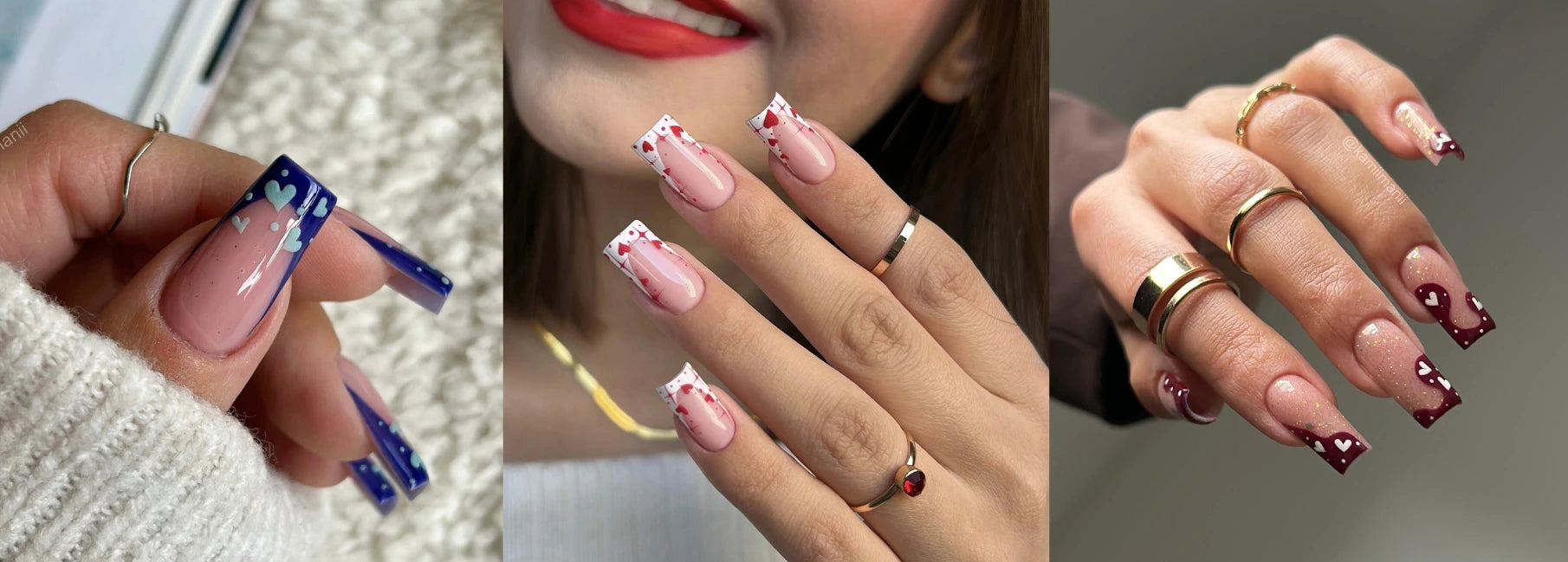 - accent nail com 2–3 corações