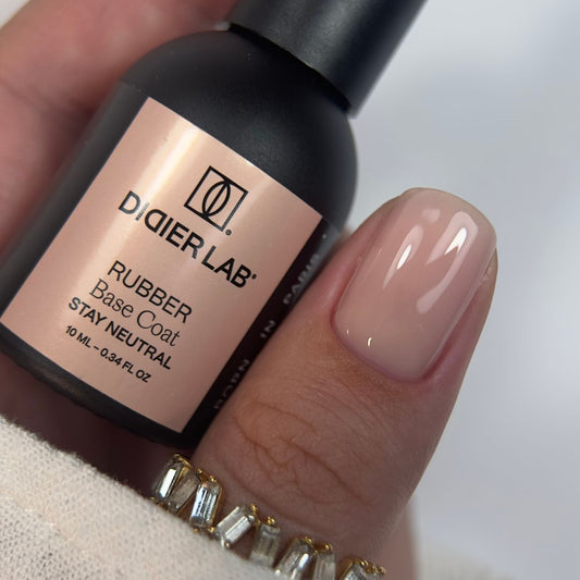 Rubber Base Didier Lab é uma base autonivelante para unhas de gel. É elástica, adequada para camuflar as estrias e uniformizar a placa ungueal. A borracha contida na base a torna flexível. A base transparente é ideal para quem deseja explorar cores de vernizes. A base colorida une base e verniz em um só frasco, ideal para quem deseja uma manicure rápida. As cores vão do nude e branco leitoso e tons vibrantes.