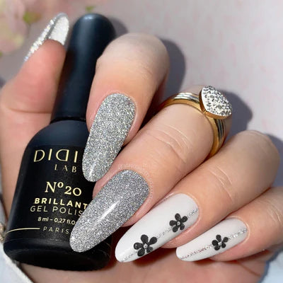 Procurando inspiração para uma manicure deslumbrante, mas um verniz com glitter comum não é suficiente? Não deixe de experimentar os vernizes flash — a tendência mais quente desta temporada. A coleção Brillant da Didier Lab apresenta vernizes UV com efeito flash. Os vernizes flash darão à sua manicure dois looks únicos. Sob luz natural, suas unhas brilharão como com o glitter. Combinados com luz artificial ou luz solar, os vernizes Brillant criam um efeito mágico ultra flash. Partículas de glitter que refletem a luz brilham sob luz artificial ou luz solar como diamantes de verdade! Crie dois looks de manicure diferentes com apenas um verniz.