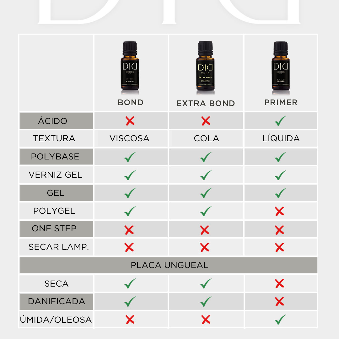 - Este primer ácido é de uso profissional e dá ao gel, acrílico ou verniz gel, o efeito máximo duradouro, erodindo a queratina da unha.
